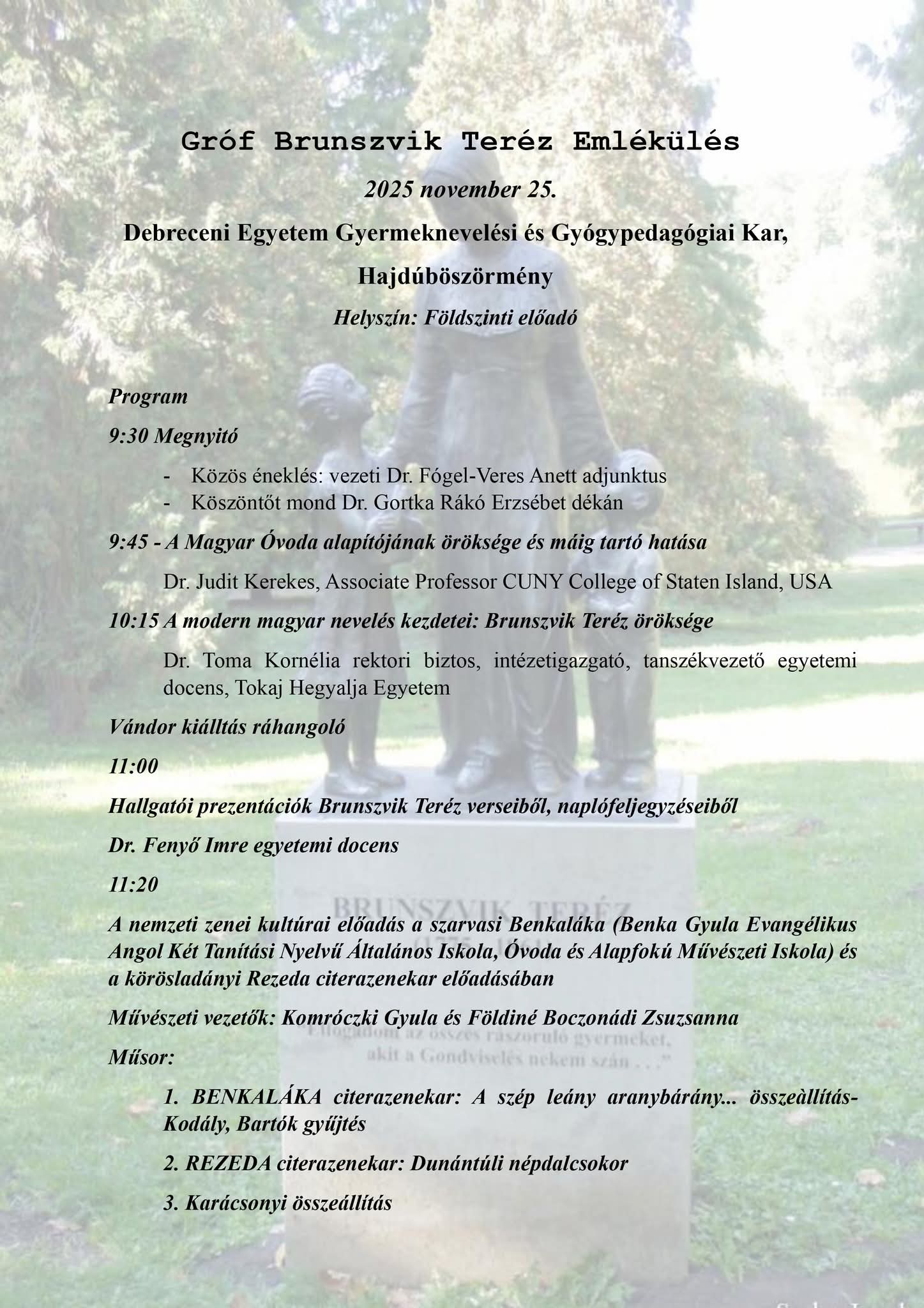 Brunszvik Teréz pedagógiai újításai és hatása: konferencia és kiállítás a Selye Egyetemen